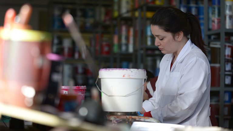Neste Laboratório temos técnicos especializados que preparam com exatidão todas as tintas para os nossos estampados, quer através de amostras, quer através dos "pantones” fornecidos, em diferentes qualidades e "toques".